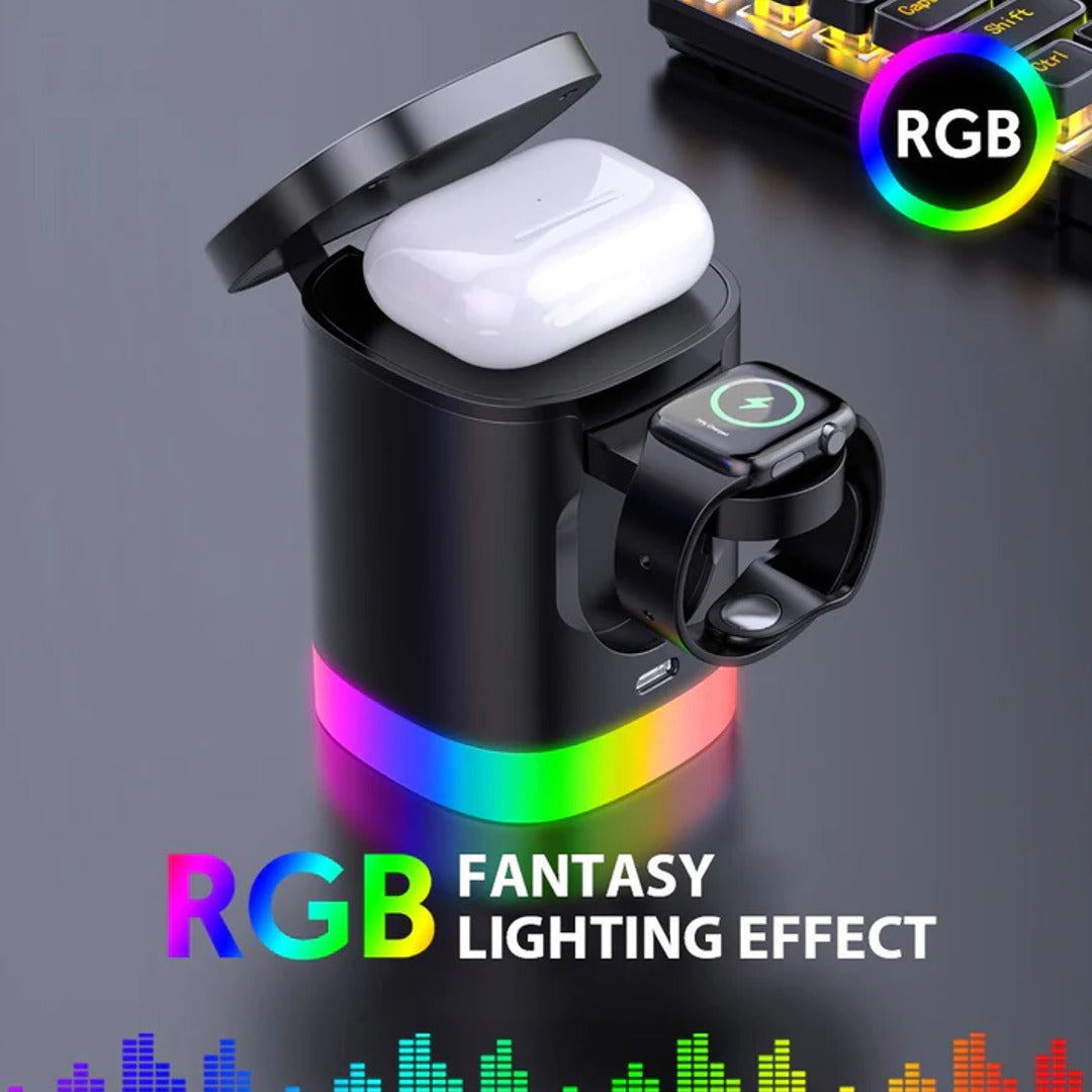 The wireless charging dock supports fast charging, allowing you to power up your devices quickly. With the ability to charge up to four devices simultaneously, it eliminates the need for multiple charging cables and adapters, reducing clutter and providing a streamlined charging experience.